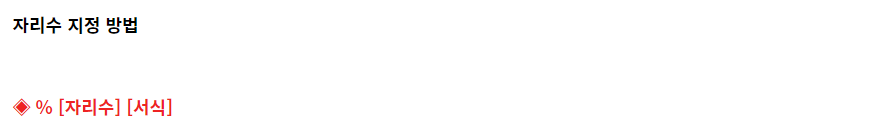 출력하고자하는 데이터를 자릿수를 잡고 출력을 해줄수 있다.