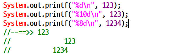 System.out.printf("12345678901234567890\n"); //-- "\n" 개행